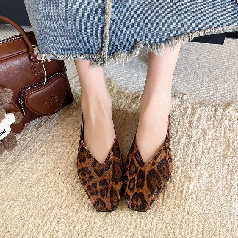 Große Größen 35-43 Schlangenledermuster Neue Damen Ballerinas mit quadratischer Spitze, flache Slipper für den Alltag, Mokassins zum Hineinschlüpfen