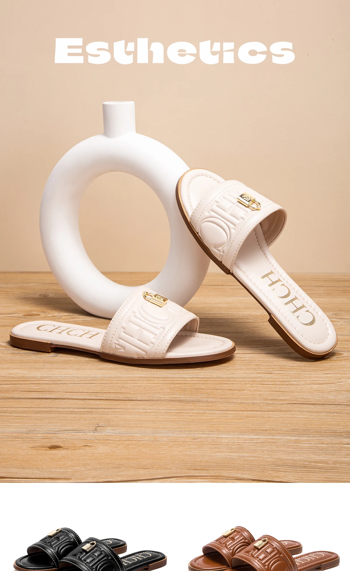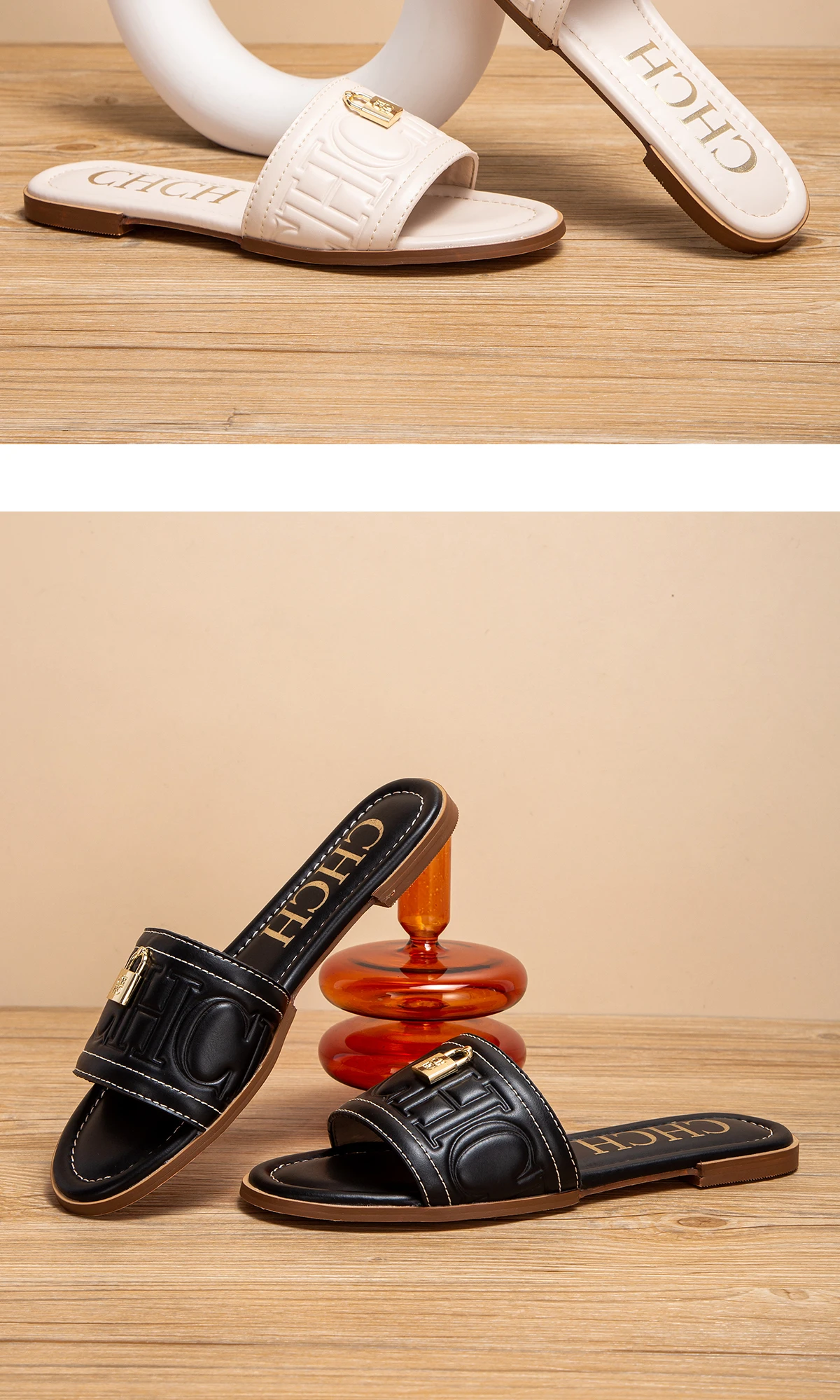 C-H Damen Ballerinas Sommer Neu Einfarbige Geprägte Sandalen Schlichte Modische Pantoffeln Für Schülerinnen Schuhe