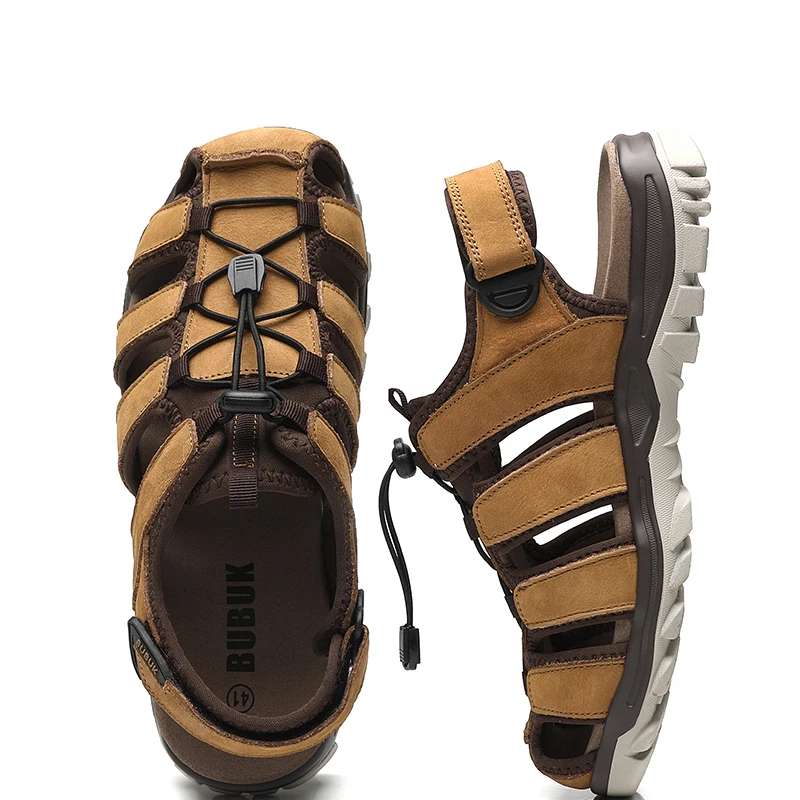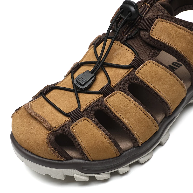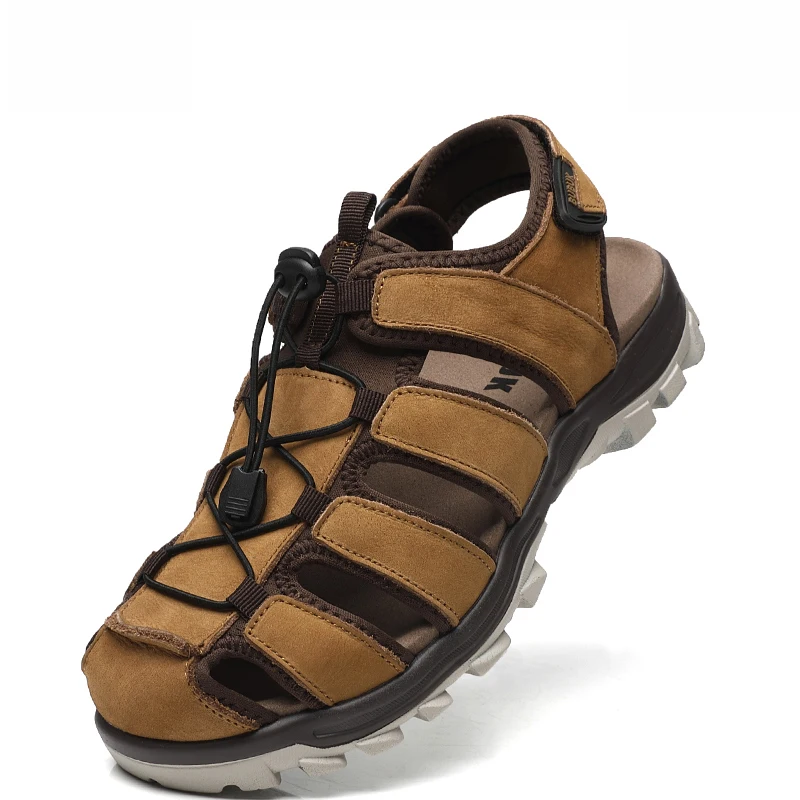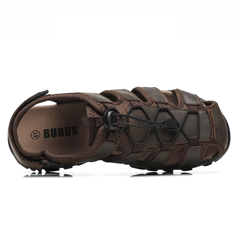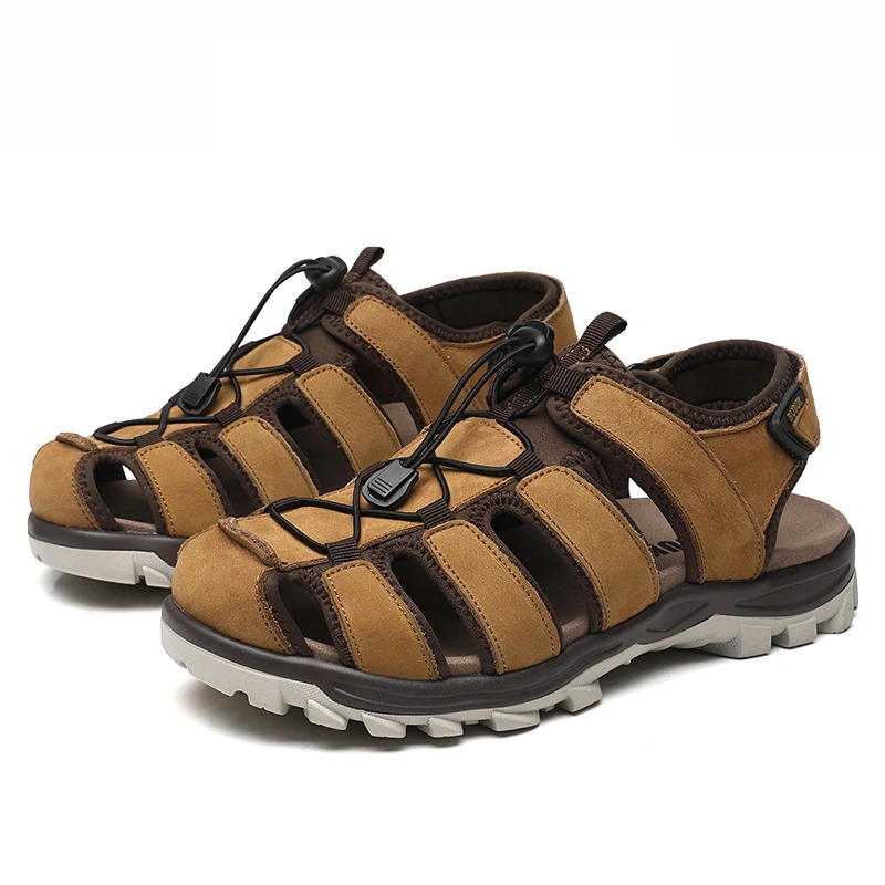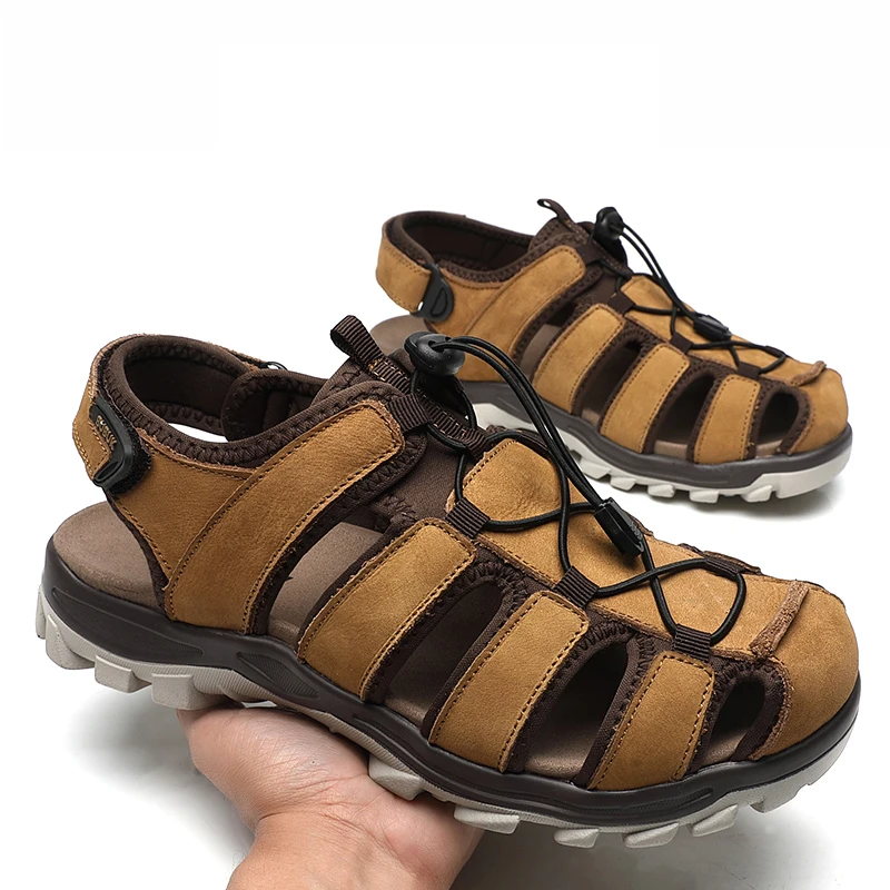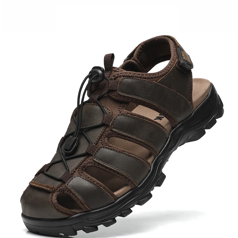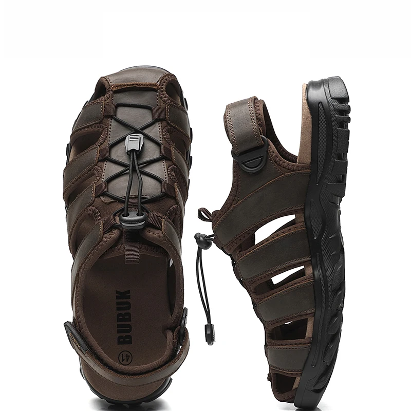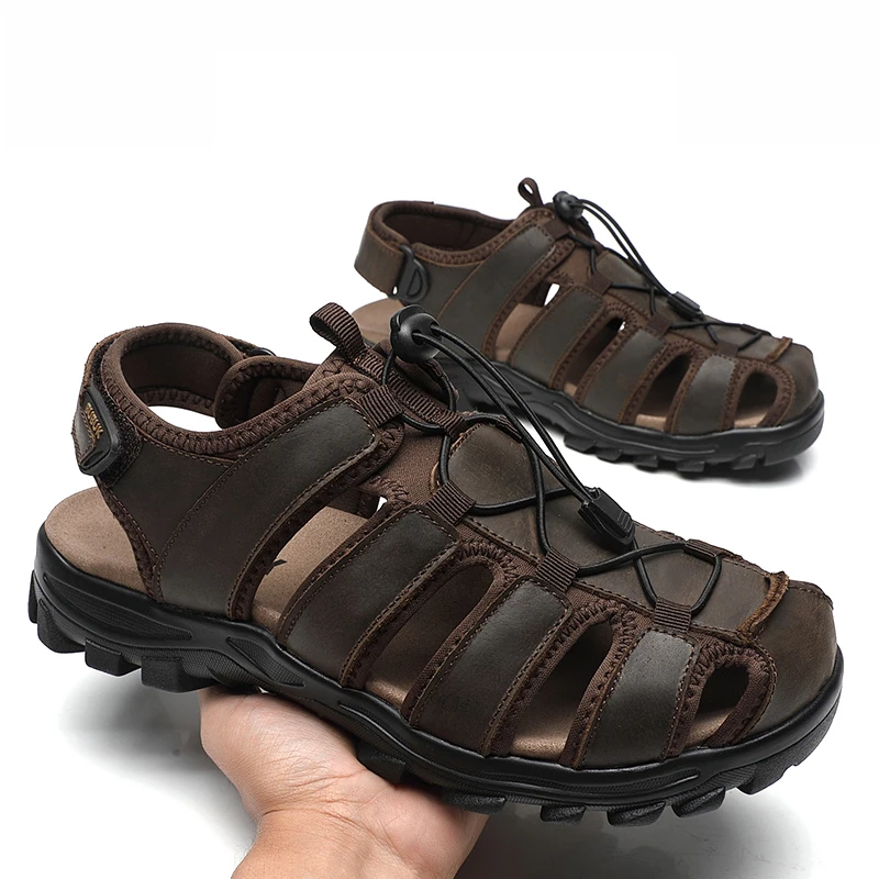 Erste-Schicht-Rindsleder Herren neue modische offene Zehen Freizeit-Sommersandalen für Herren, verstellbar, rutschfest, bequeme weiche Sohle für den Strand