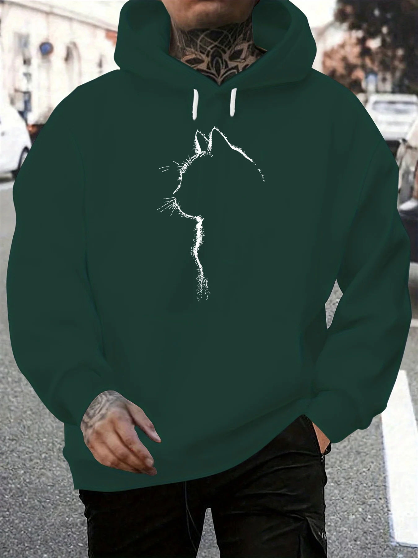 Herren Herbst- und Winter-Freizeitmode: Locker sitzendes Kapuzen-Sweatshirt mit Katzenmuster, langärmelig und warmer Pullover.
