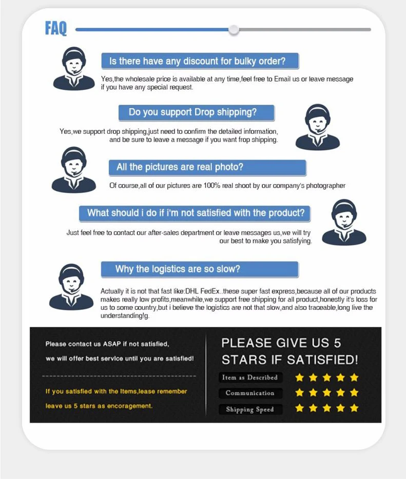 3.If you have any quality problems after receiving the goods, please contact us and we will give you a satisfactory answer.
