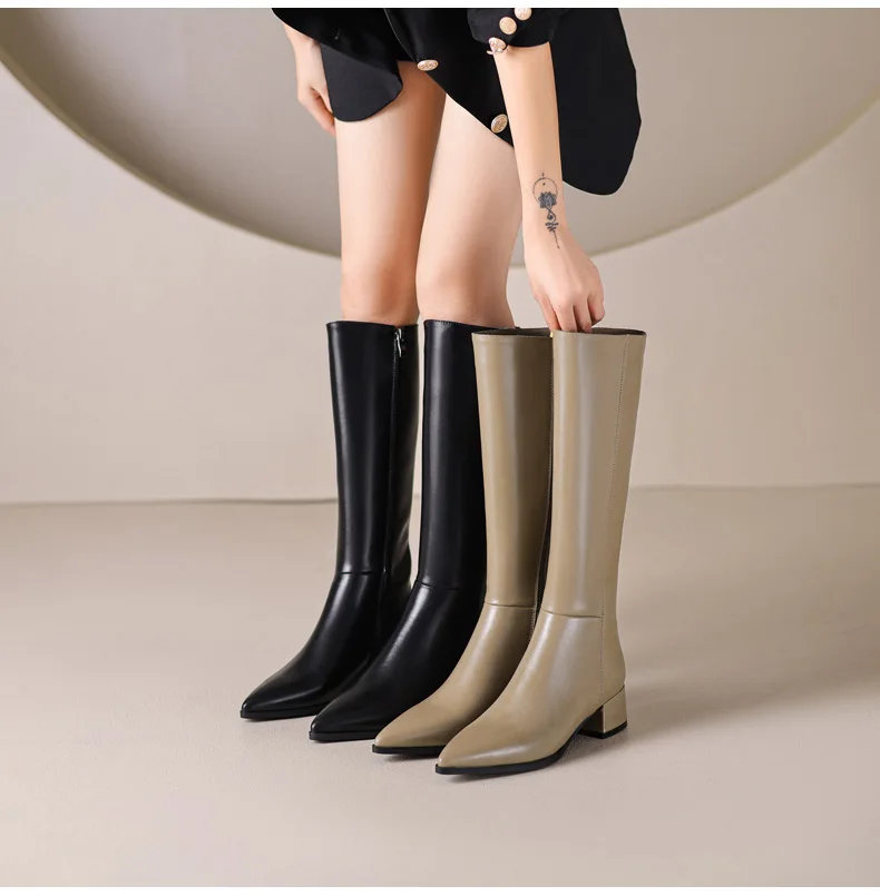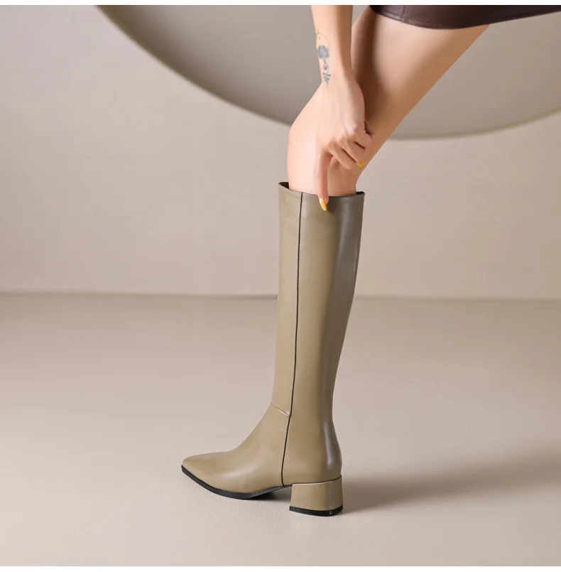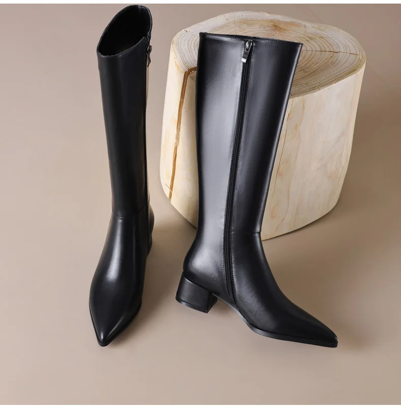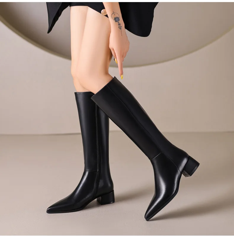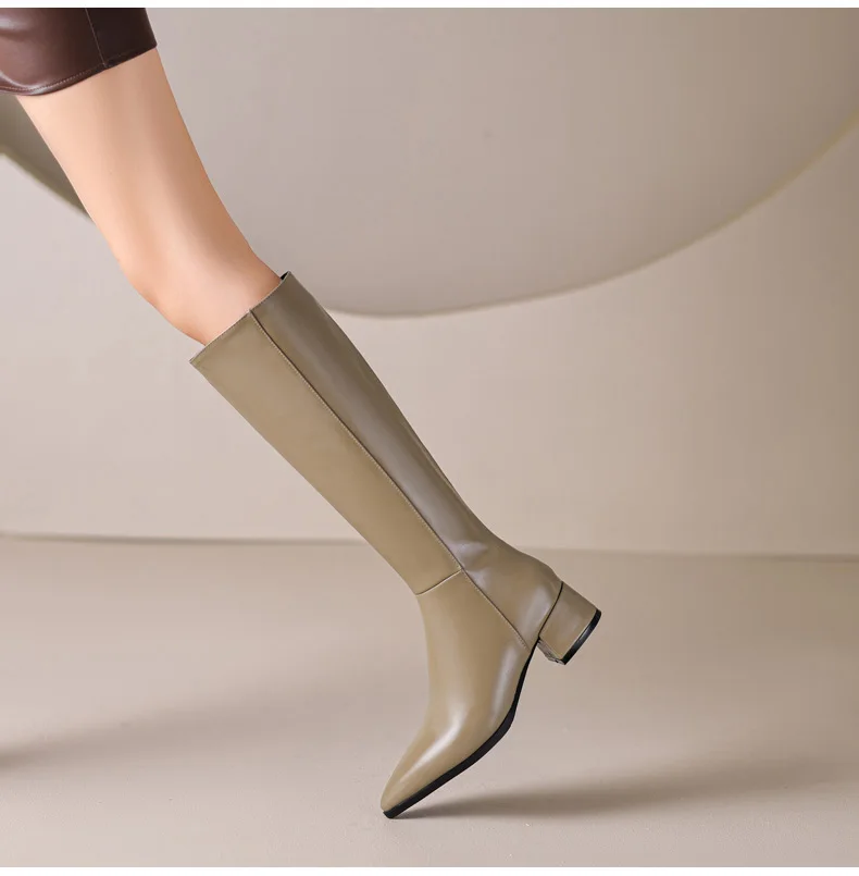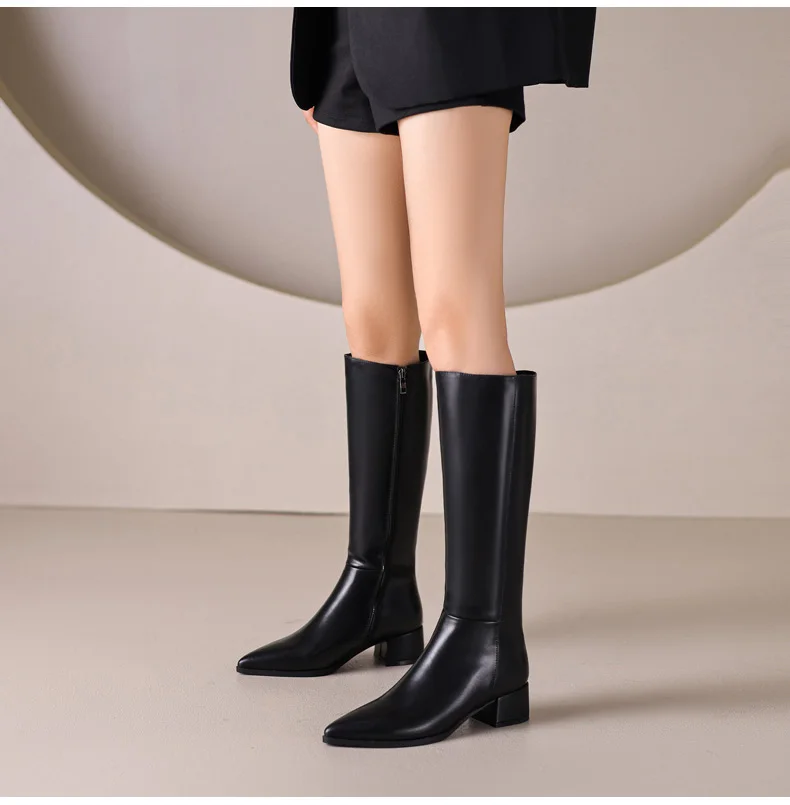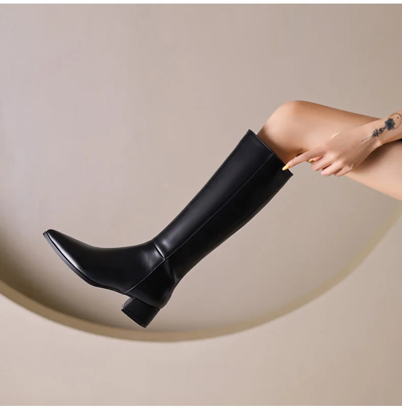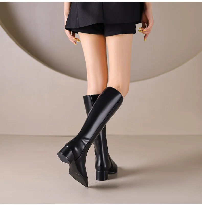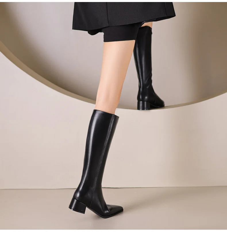 Ods Herbst Winter Damen Kniehohe Klassische Stretch Schlanke Lange Stiefel mit Dicken Hohen Absätzen, Quadratspitze, Schlichte Schuhe in Großen Größen 41 42 43 45